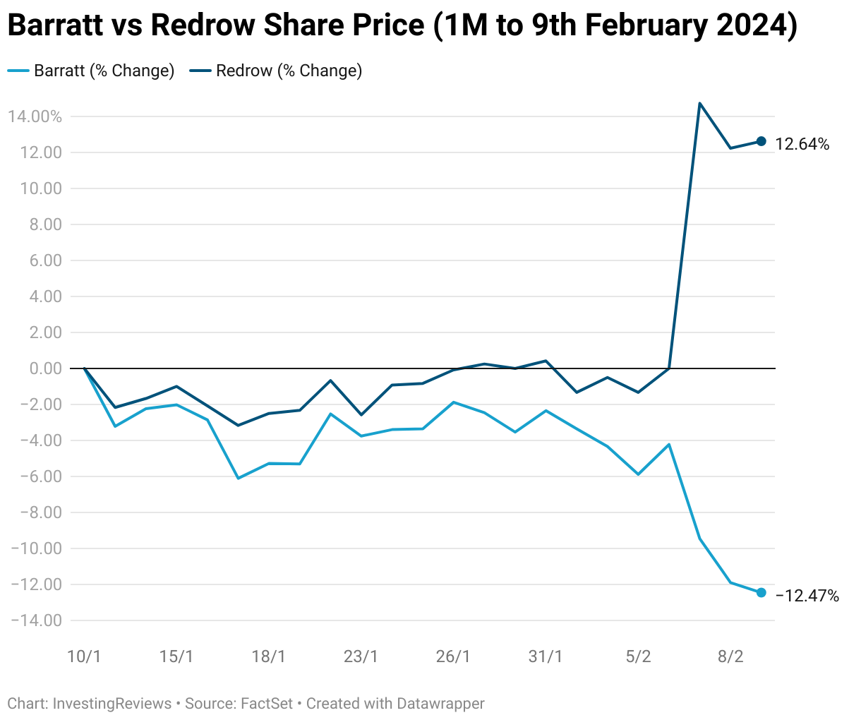 Barratt vs Redrow Share Price (1M to 9th February 2024)