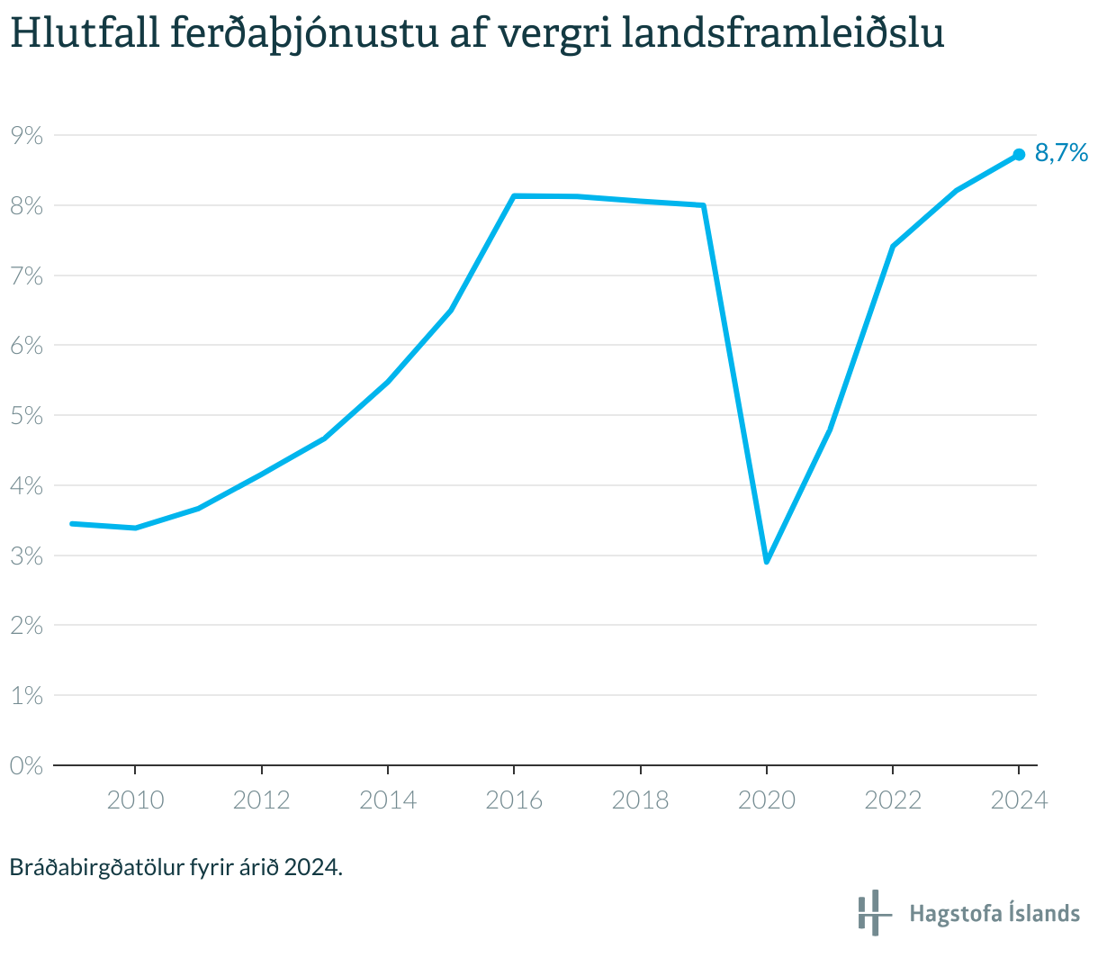 Hlutfall ferðaþjónustu af vergri landsframleiðslu