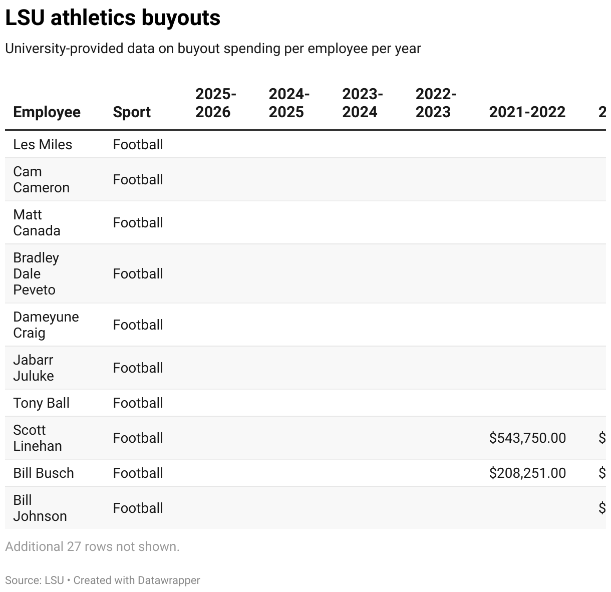 University-provided data on buyout spending per employee per year