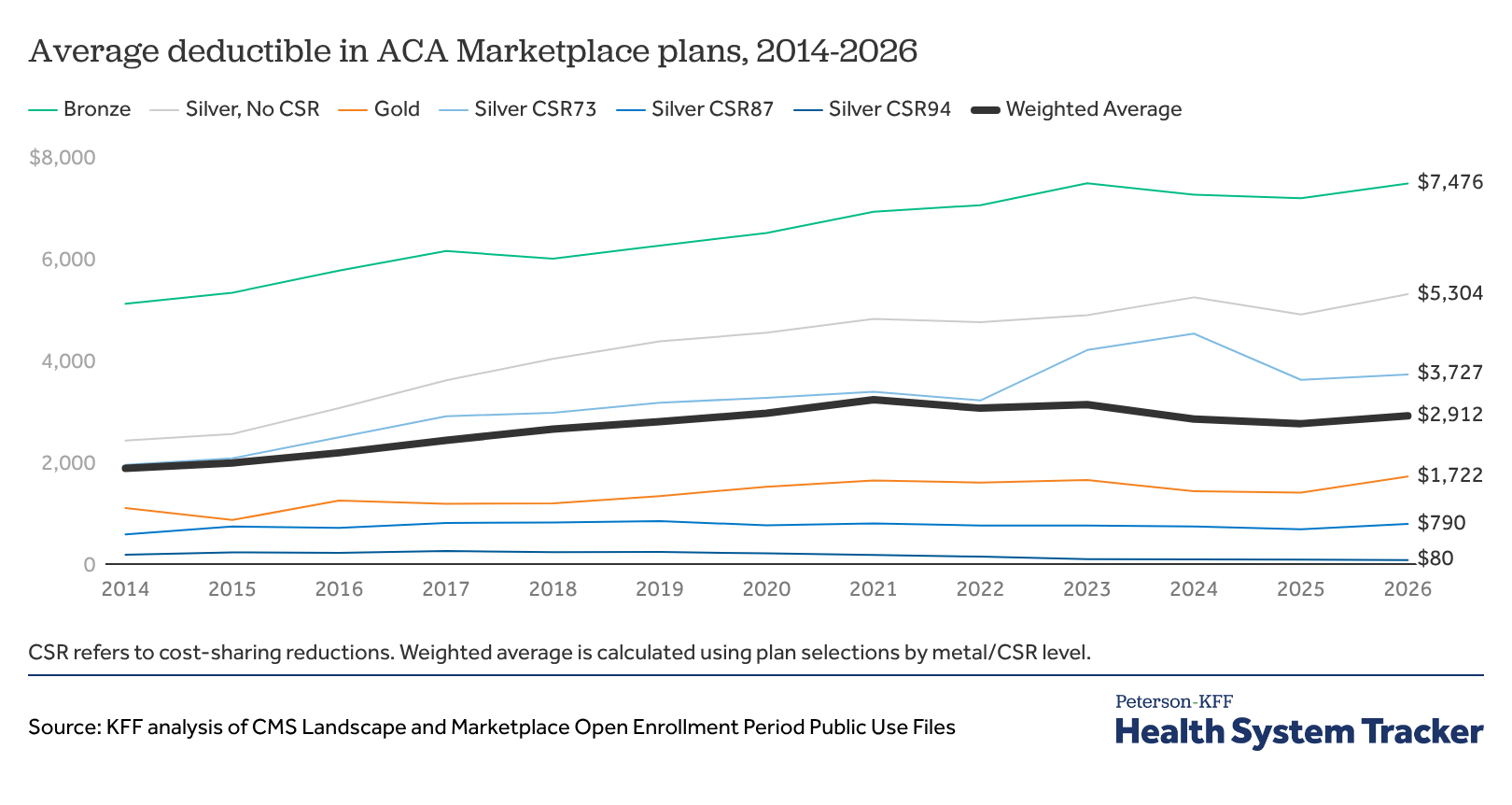 Average deductible in ACA Marketplace plans, 2014-2026