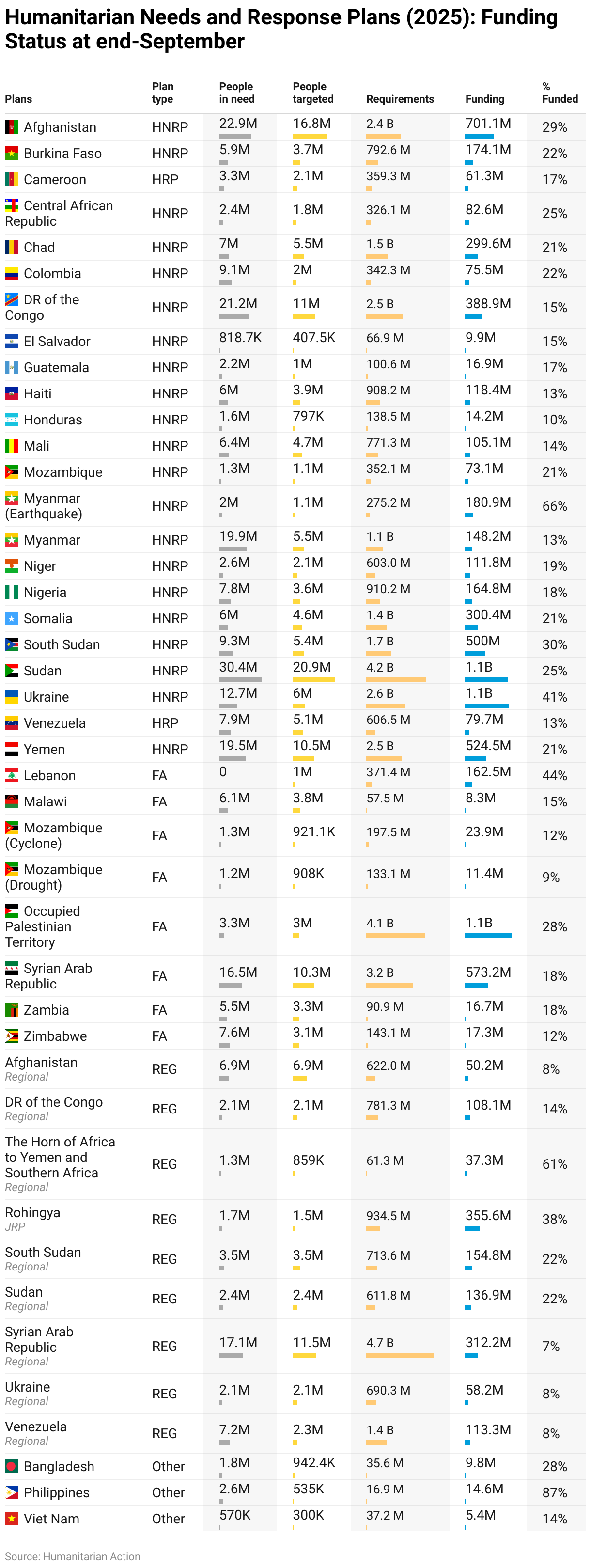 Humanitarian Needs and Response Plans (2025): Funding Status at end-September