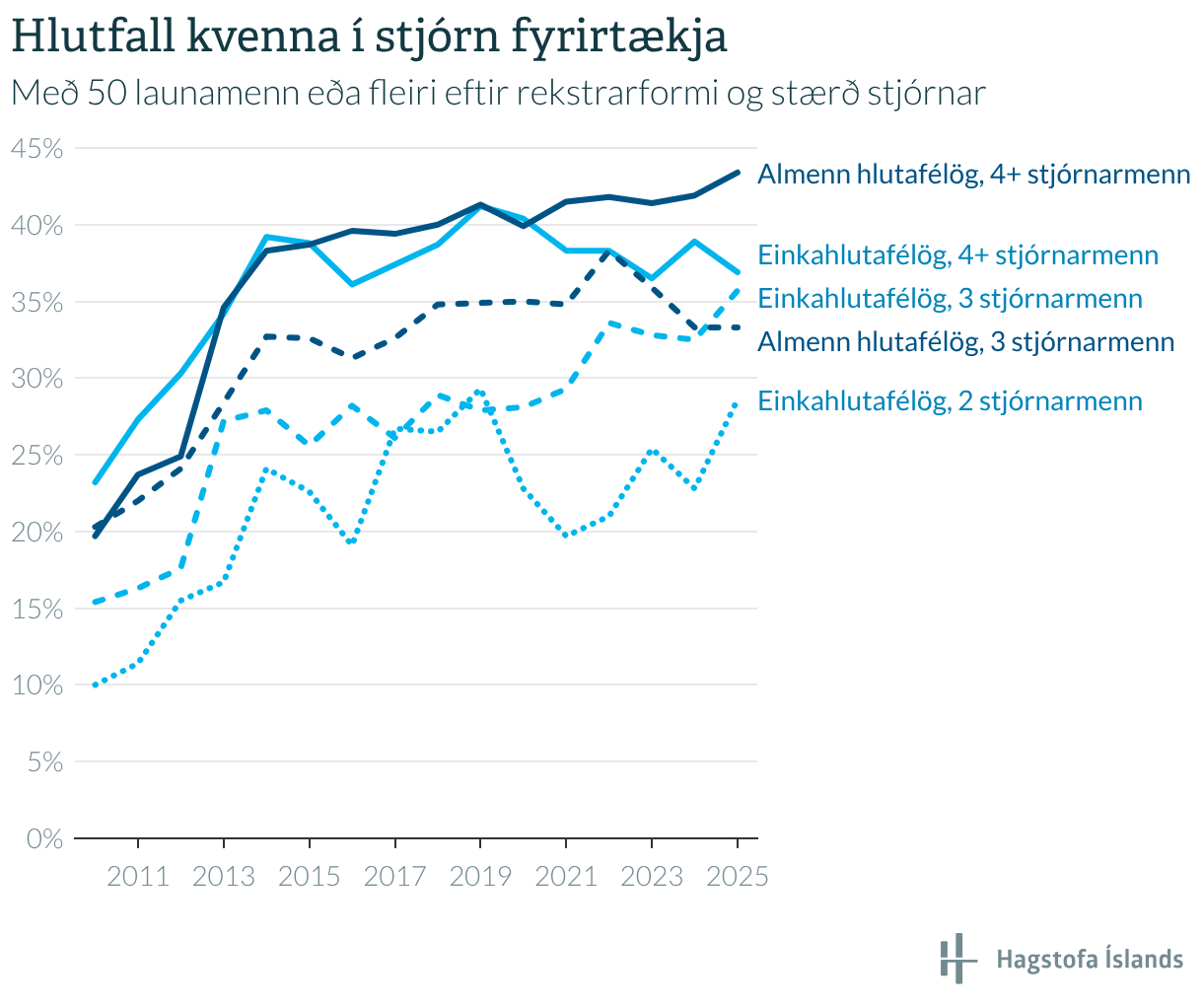 Með 50 launamenn eða fleiri eftir rekstrarformi og stærð stjórnar