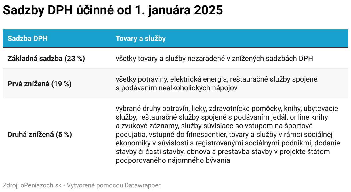 Sadzby DPH účinné od 1. januára 2025