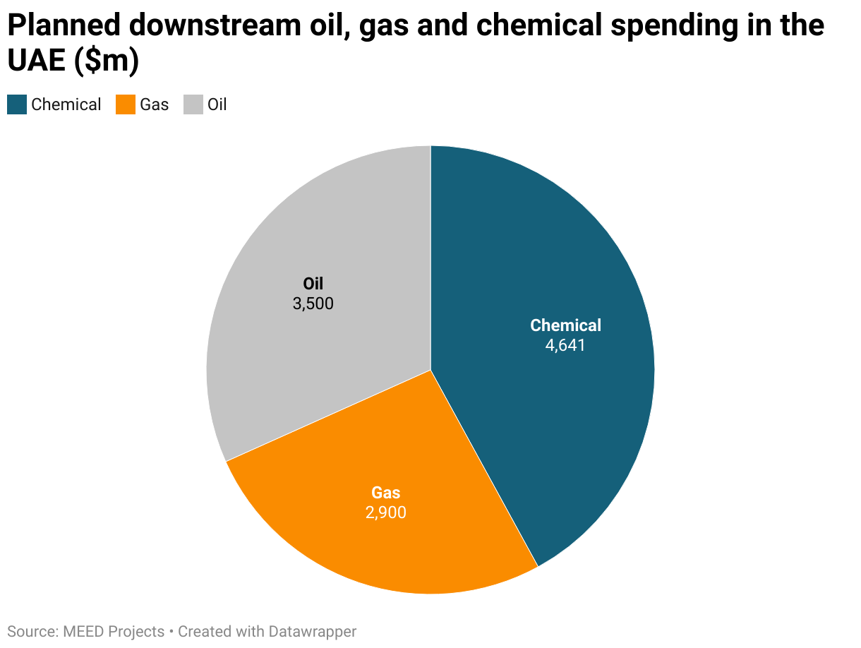 Planned downstream oil, gas and chemical spending in the UAE ($m)