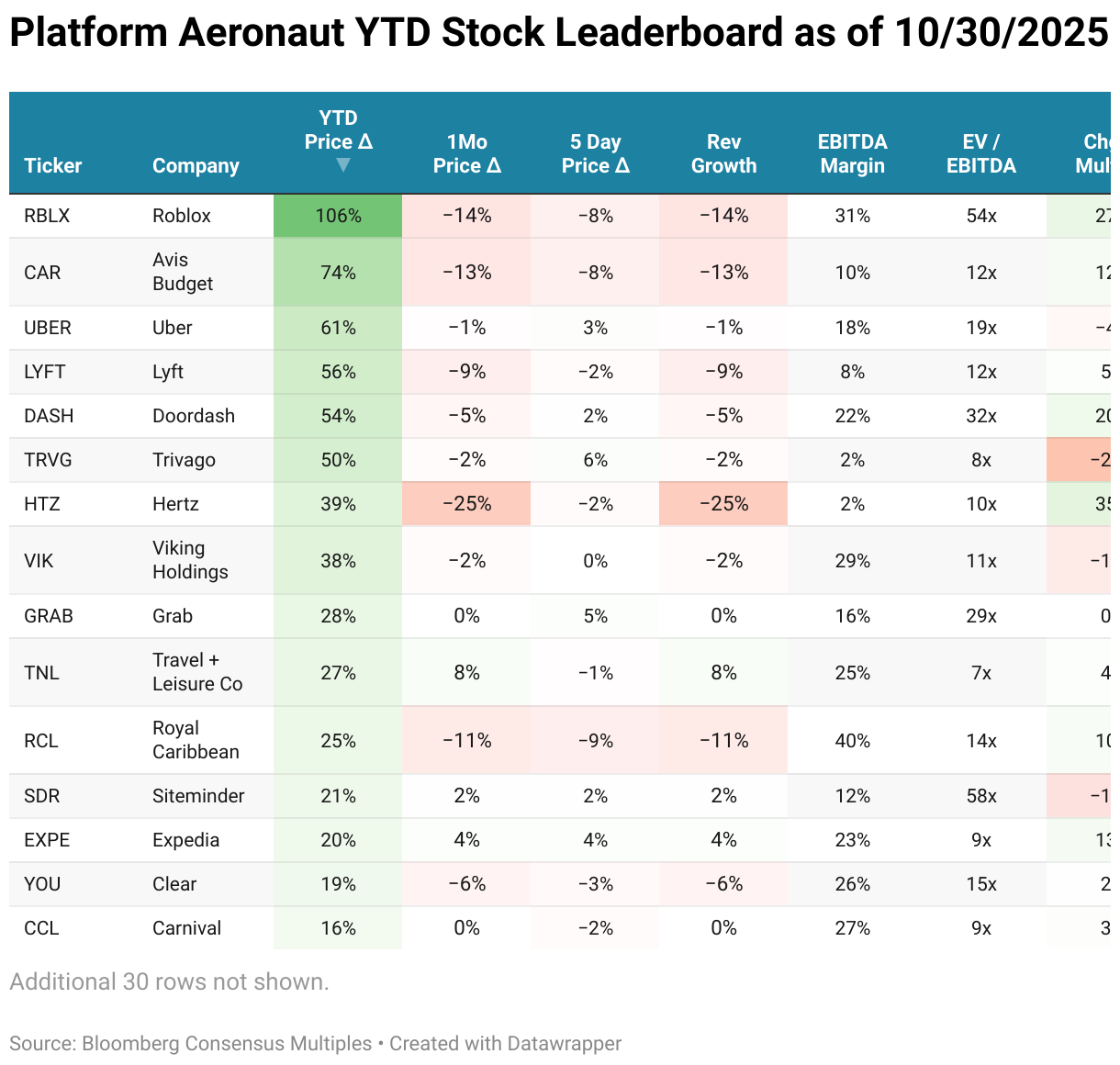 Platform Aeronaut YTD Stock Leaderboard as of 10/30/2025