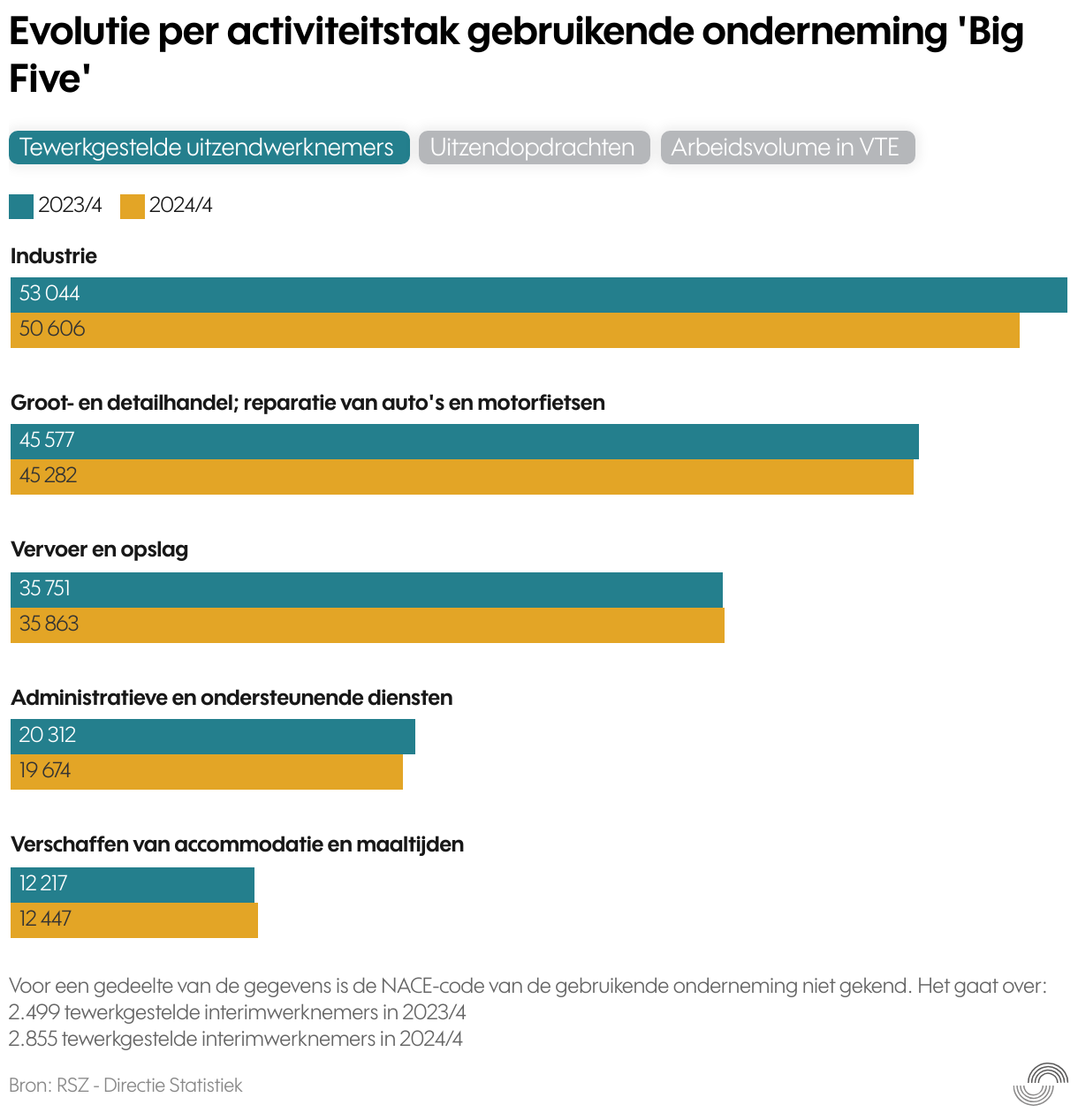 Tewerkgestelde uitzendwerknemers Uitzendopdrachten Arbeidsvolume in VTE