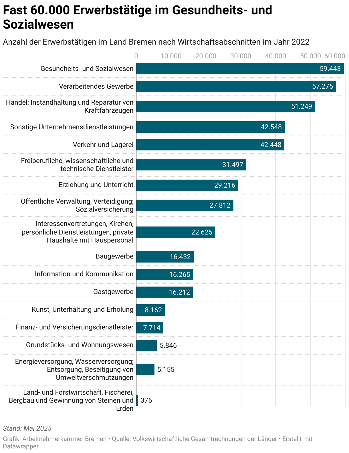 Anzahl der Erwerbstätigen im Land Bremen nach Wirtschaftsabschnitten im Jahr 2022