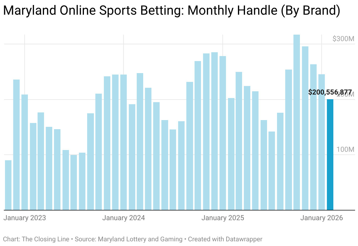 Maryland Online Sports Betting: Monthly Handle (By Brand)