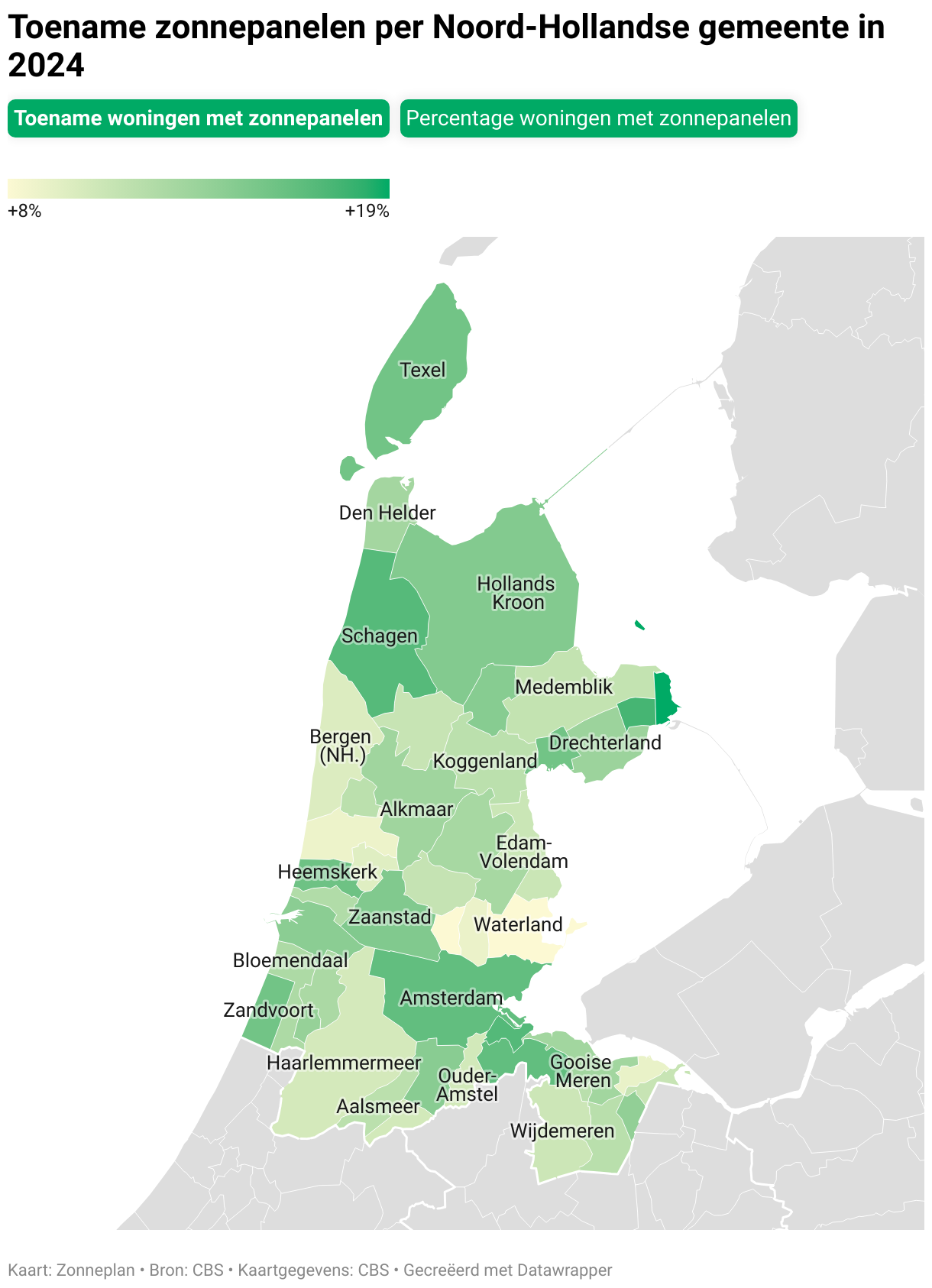 Toename woningen met zonnepanelen Percentage woningen met zonnepanelen
