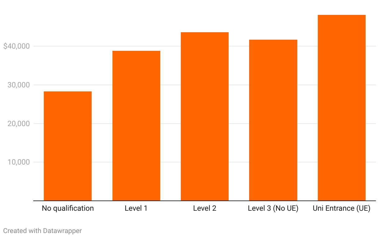 Average annual earnings in 2018 of school leavers in 2009 who attained a Level 4 Certificate in tertiary education by highest school qualification