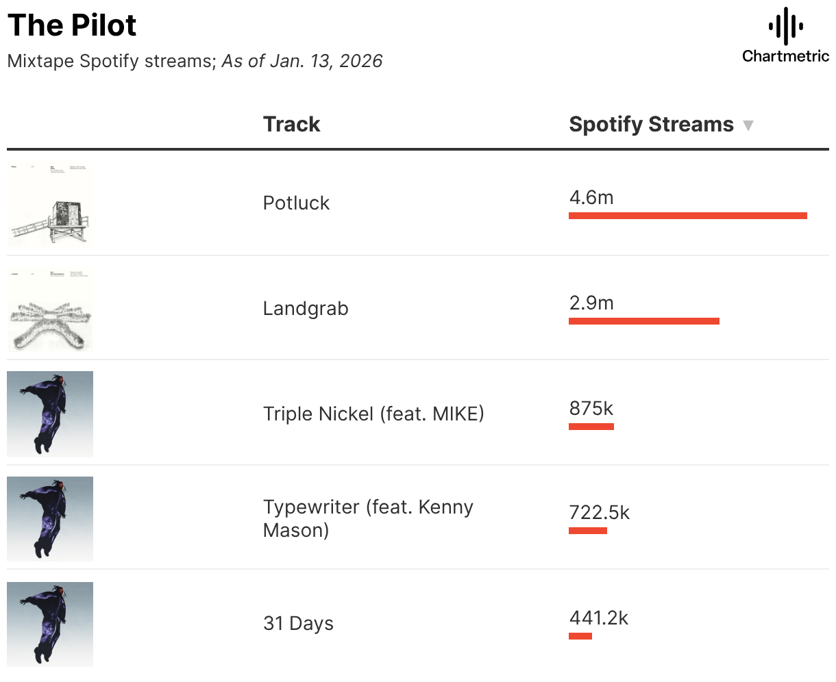 Mixtape Spotify streams; As of Jan. 13, 2026