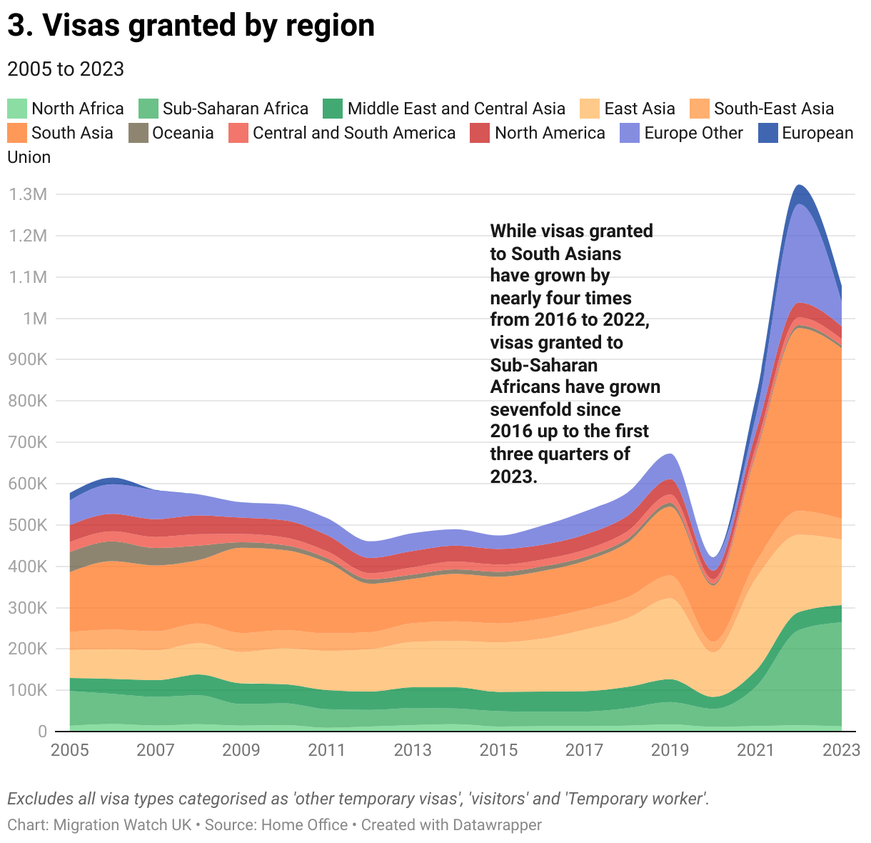 3. Visas granted by region