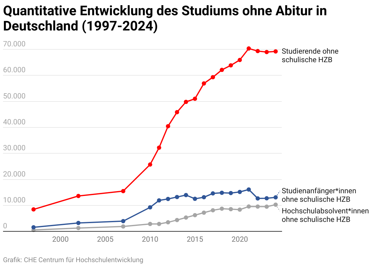 Quantitative Entwicklung des Studiums ohne Abitur in Deutschland (1997-2024)