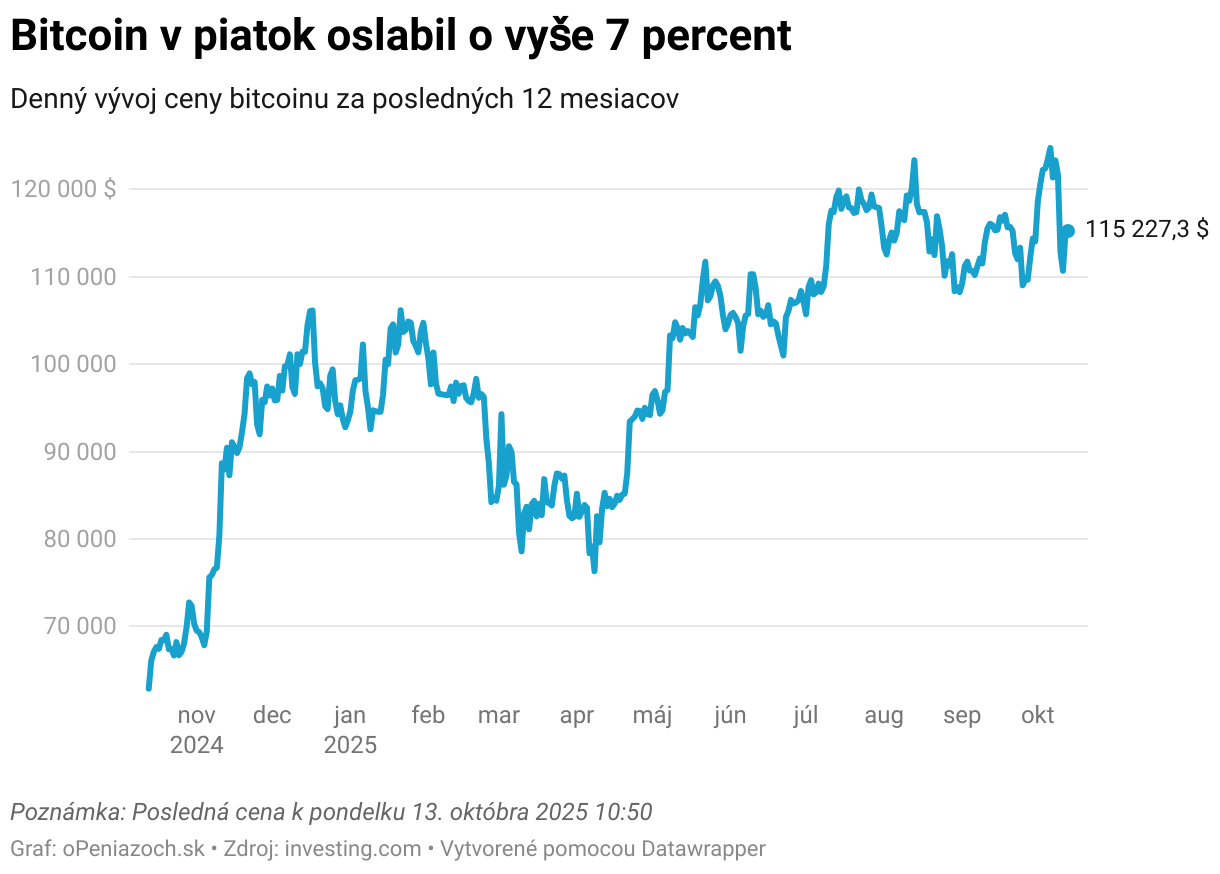 Denný vývoj ceny bitcoinu za posledných 12 mesiacov