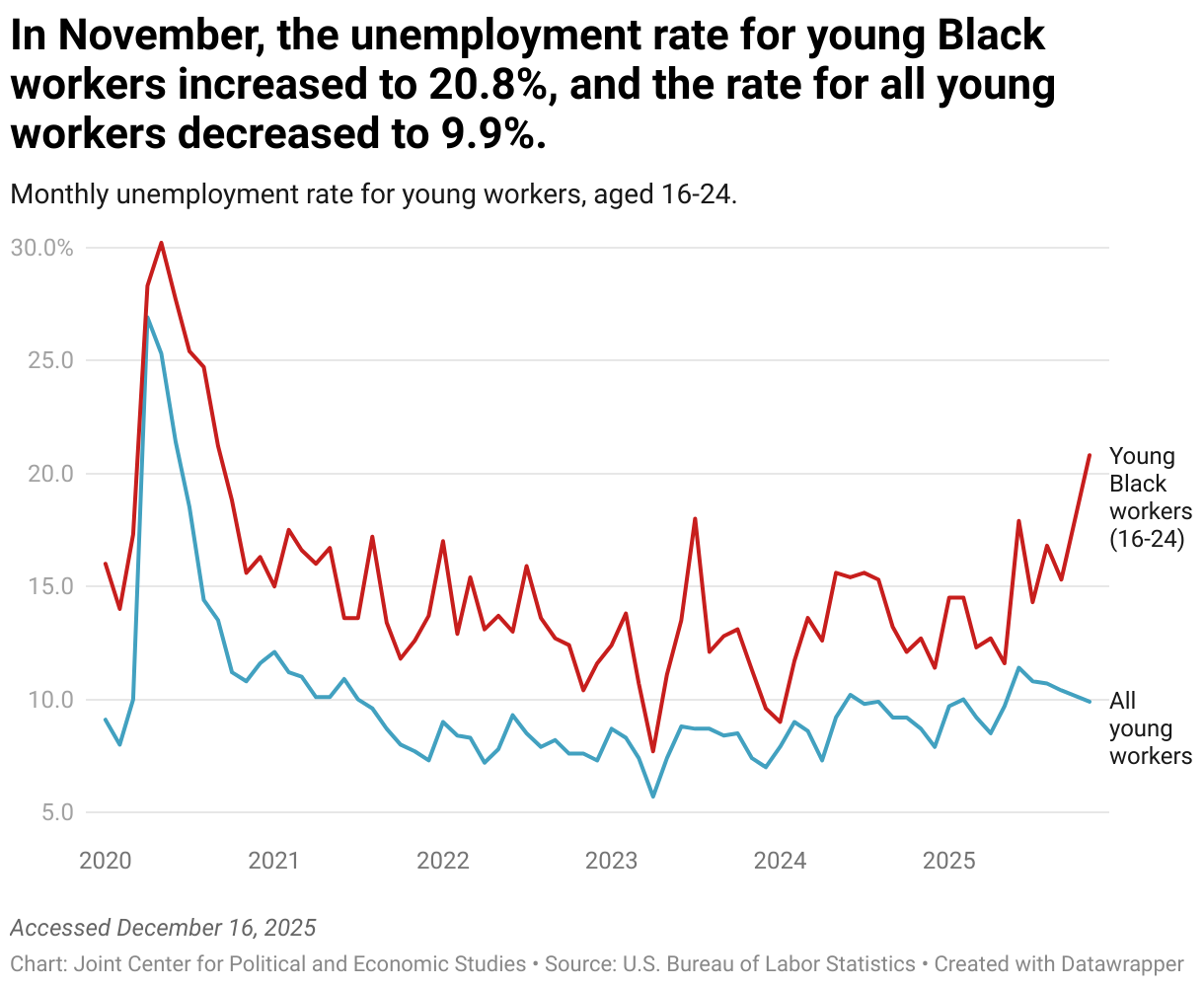 Monthly unemployment rate for young workers, aged 16-24.