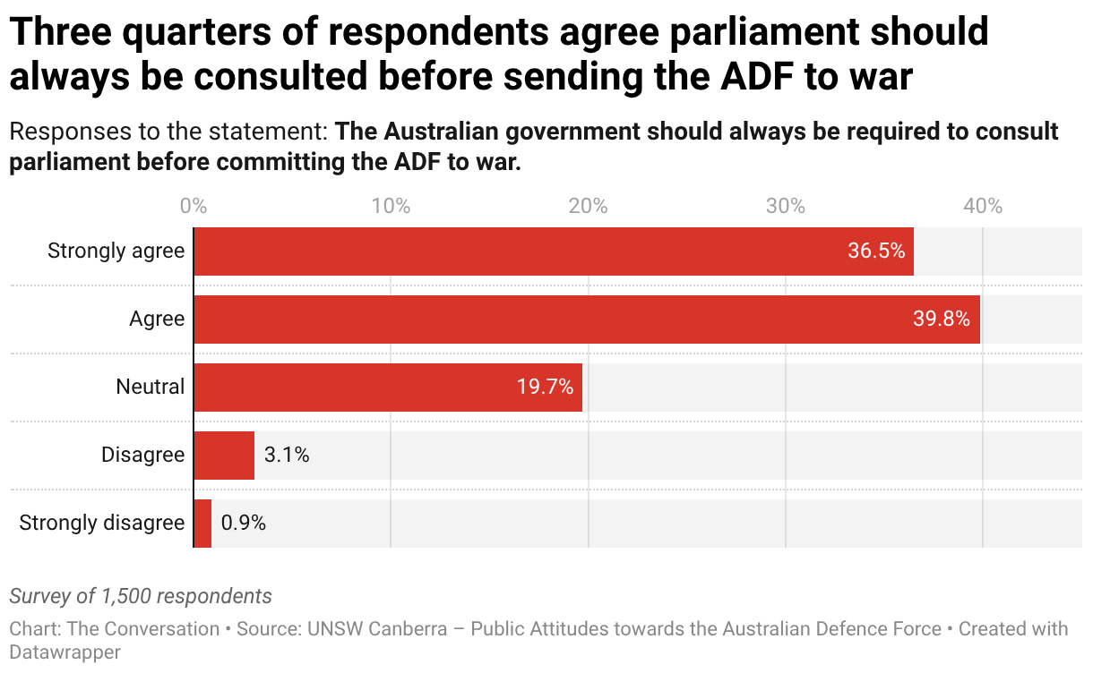 Responses to the statement: The Australian government should always be required to consult parliament before committing the ADF to war.
