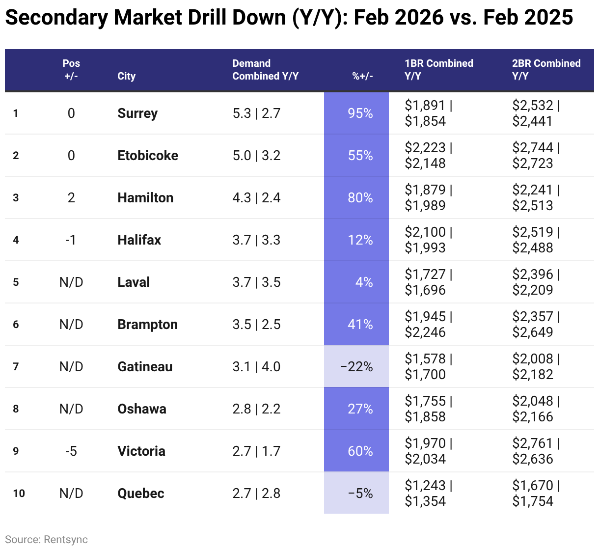 Secondary market rental demand year over year