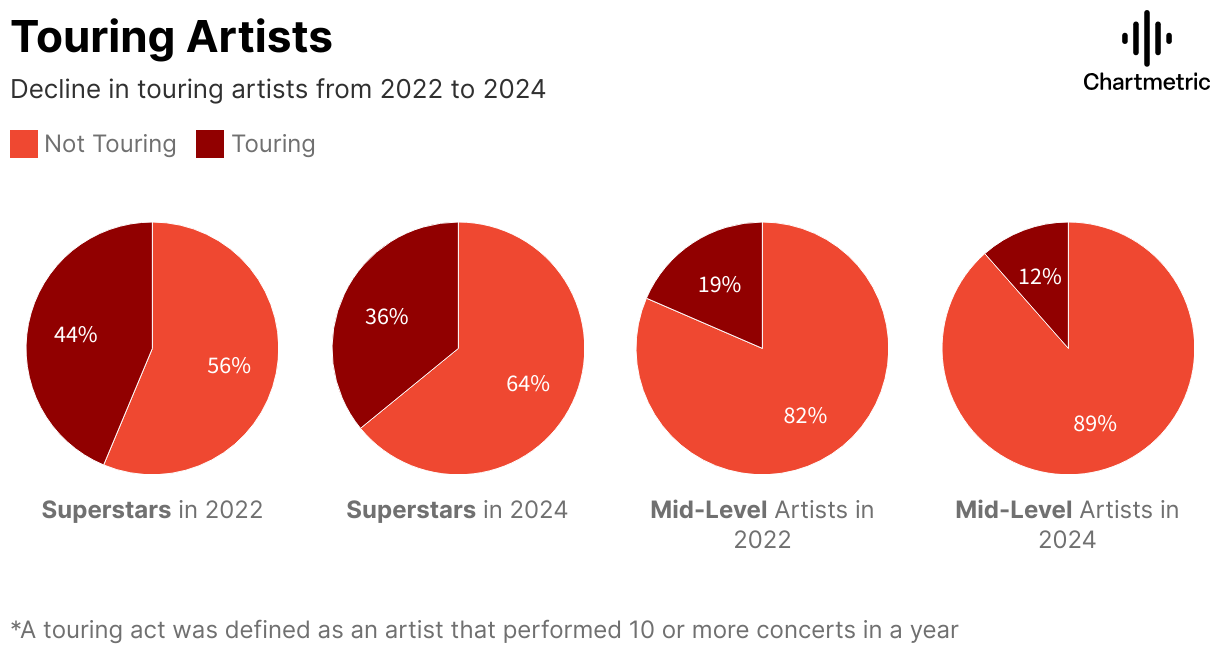 Decline in touring artists from 2022 to 2024