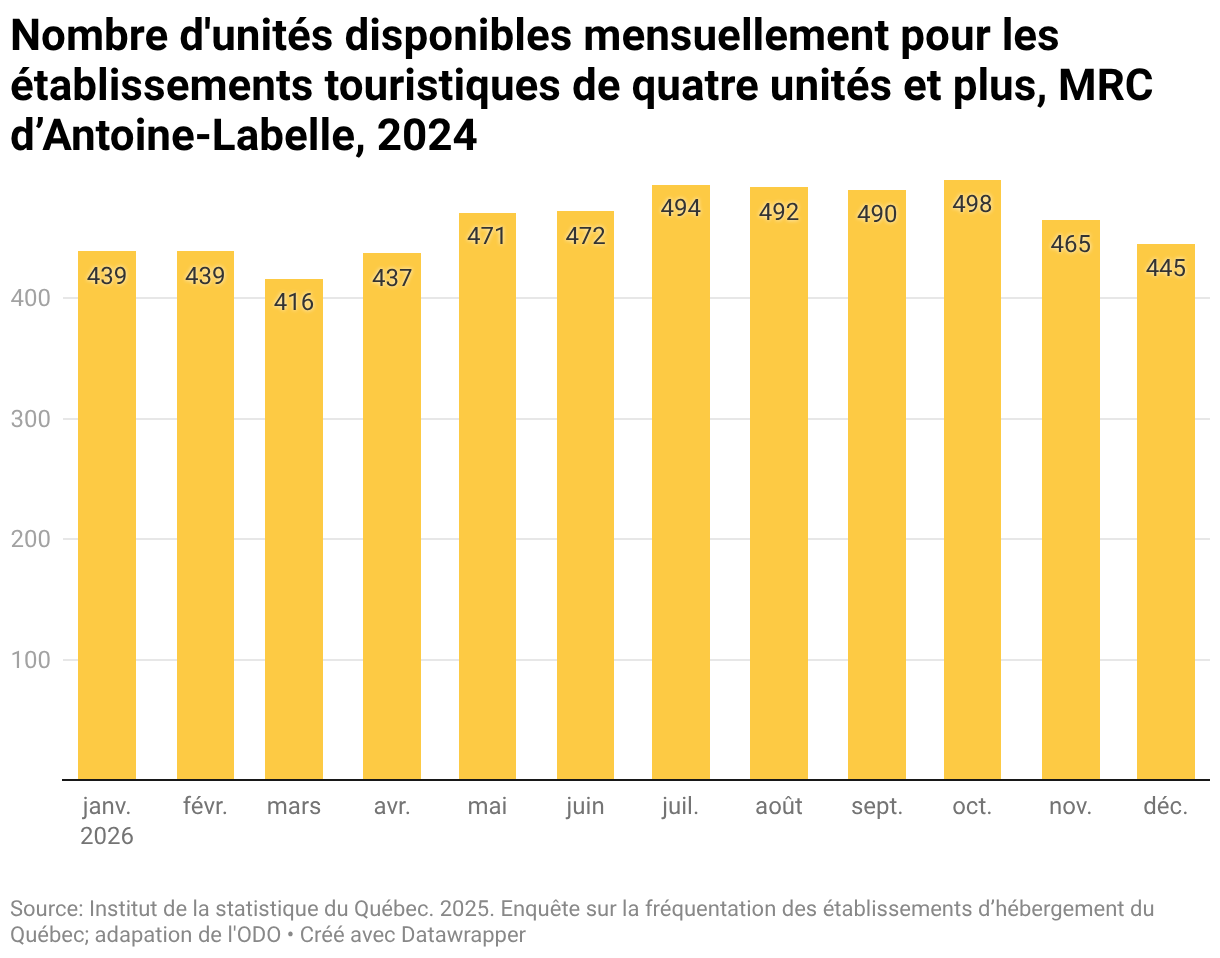 Nombre d'unités disponibles mensuellement pour les établissements touristiques de quatre unités et plus, MRC d’Antoine-Labelle, 2024