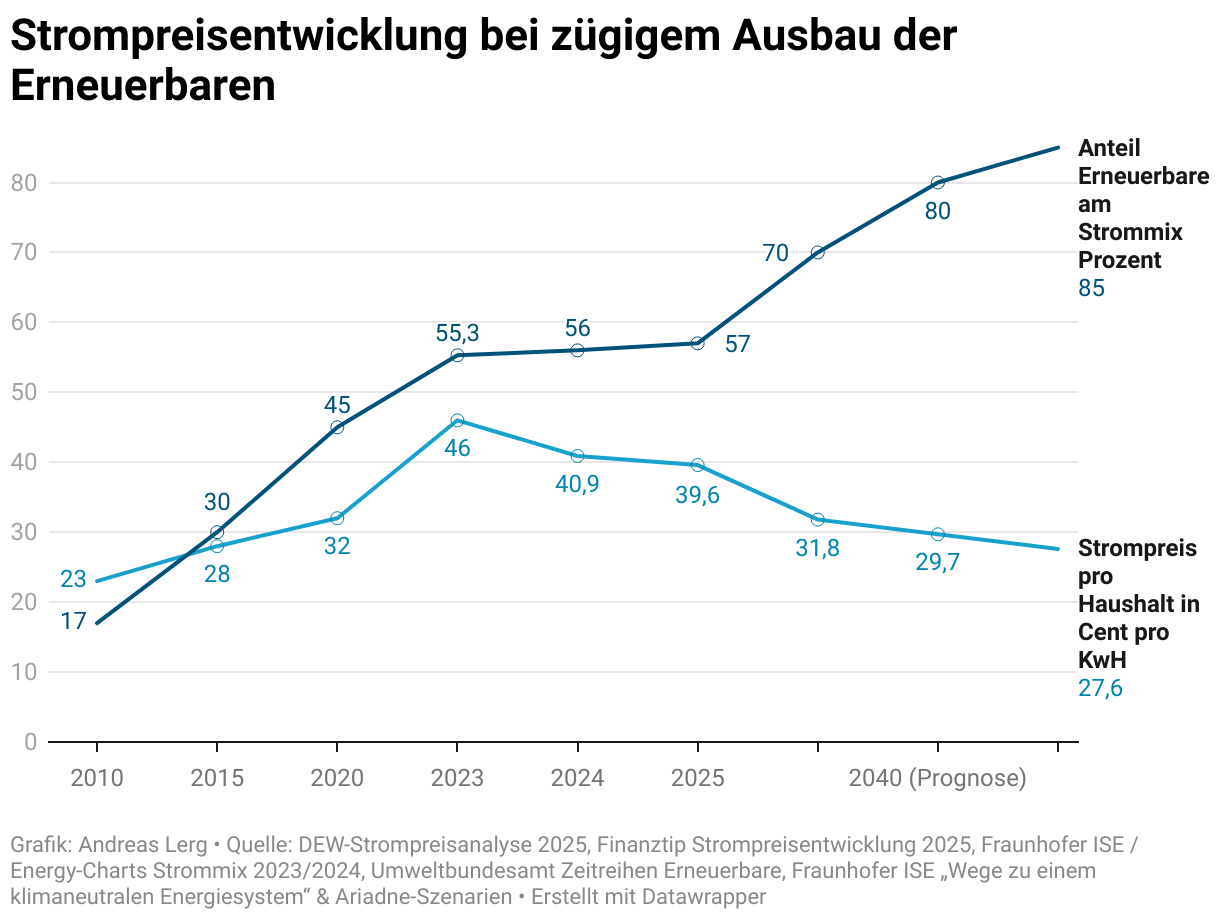 Strompreisentwicklung bei zügigem Ausbau der Erneuerbaren