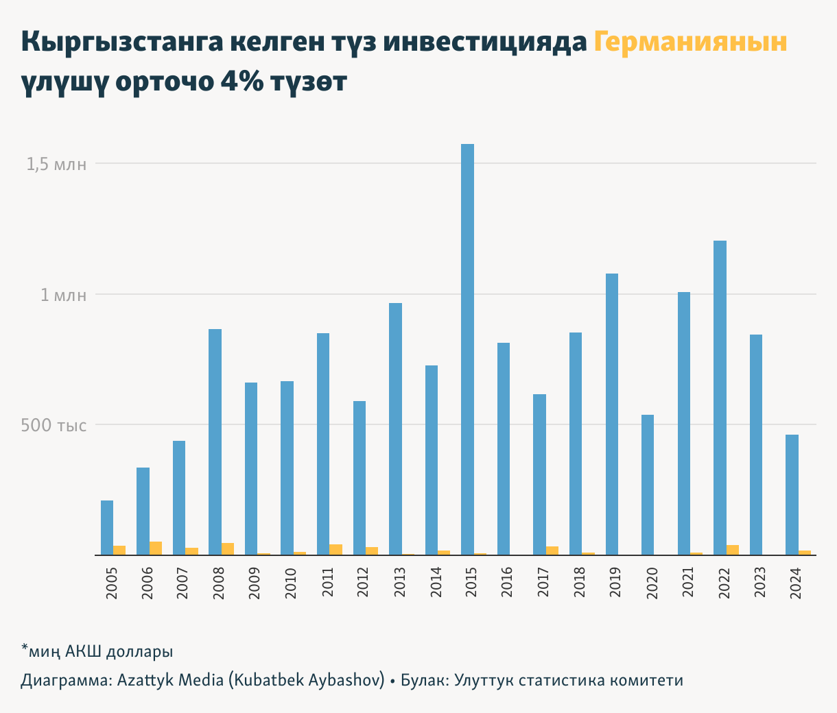 Кыргызстанга келген түз инвестицияда