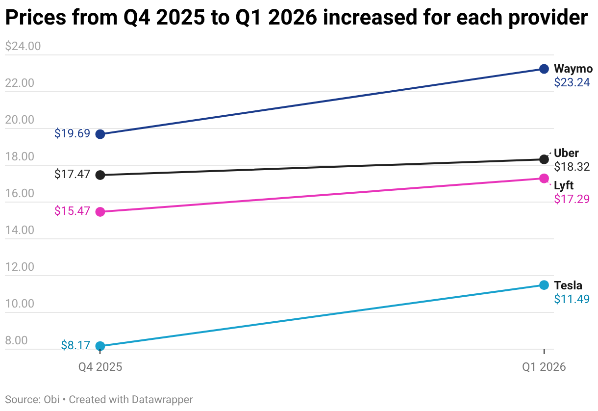 Prices from Q4 2025 to Q1 2026 increased for each provider