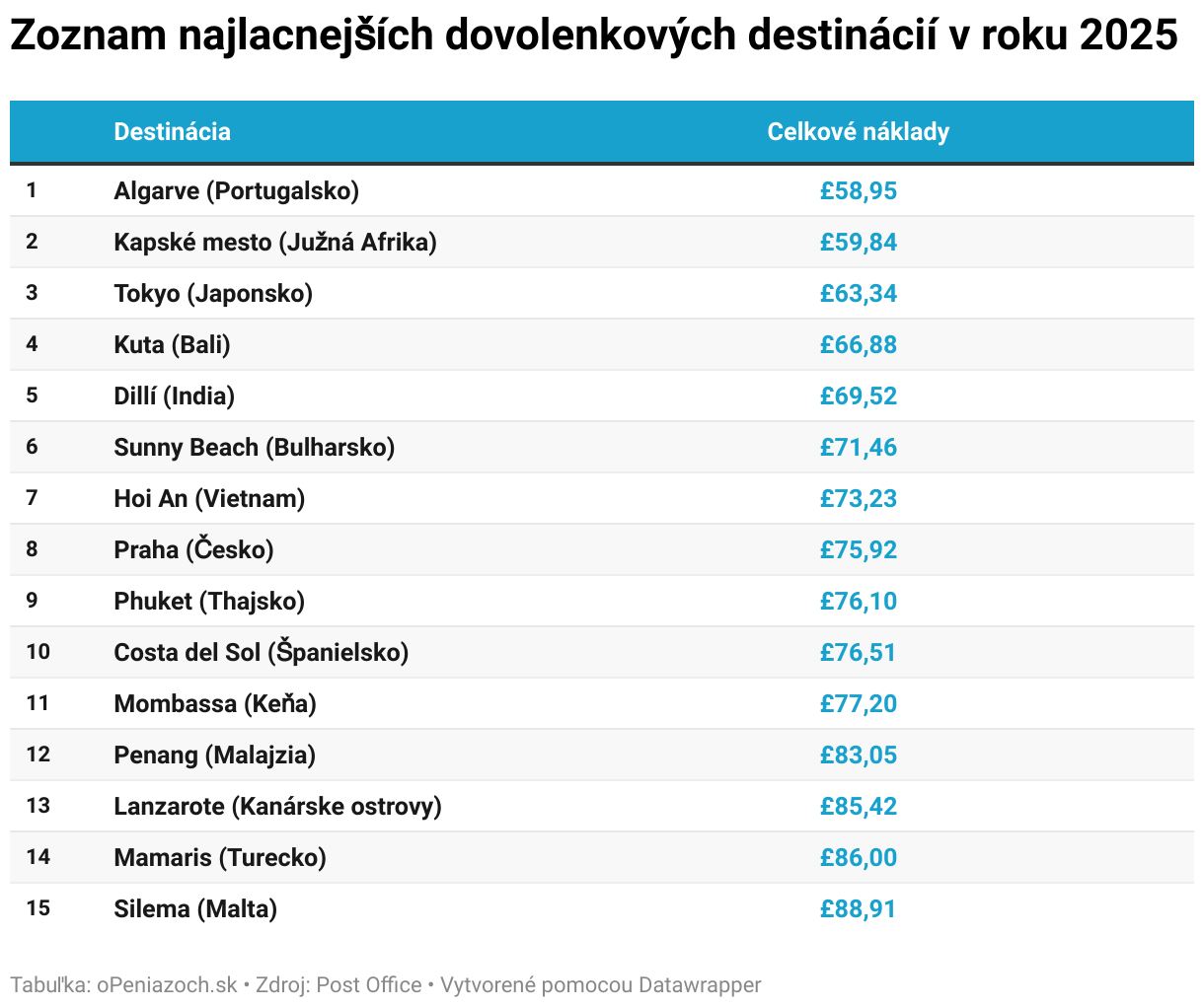 Zoznam najlacnejších dovolenkových destinácií v roku 2025