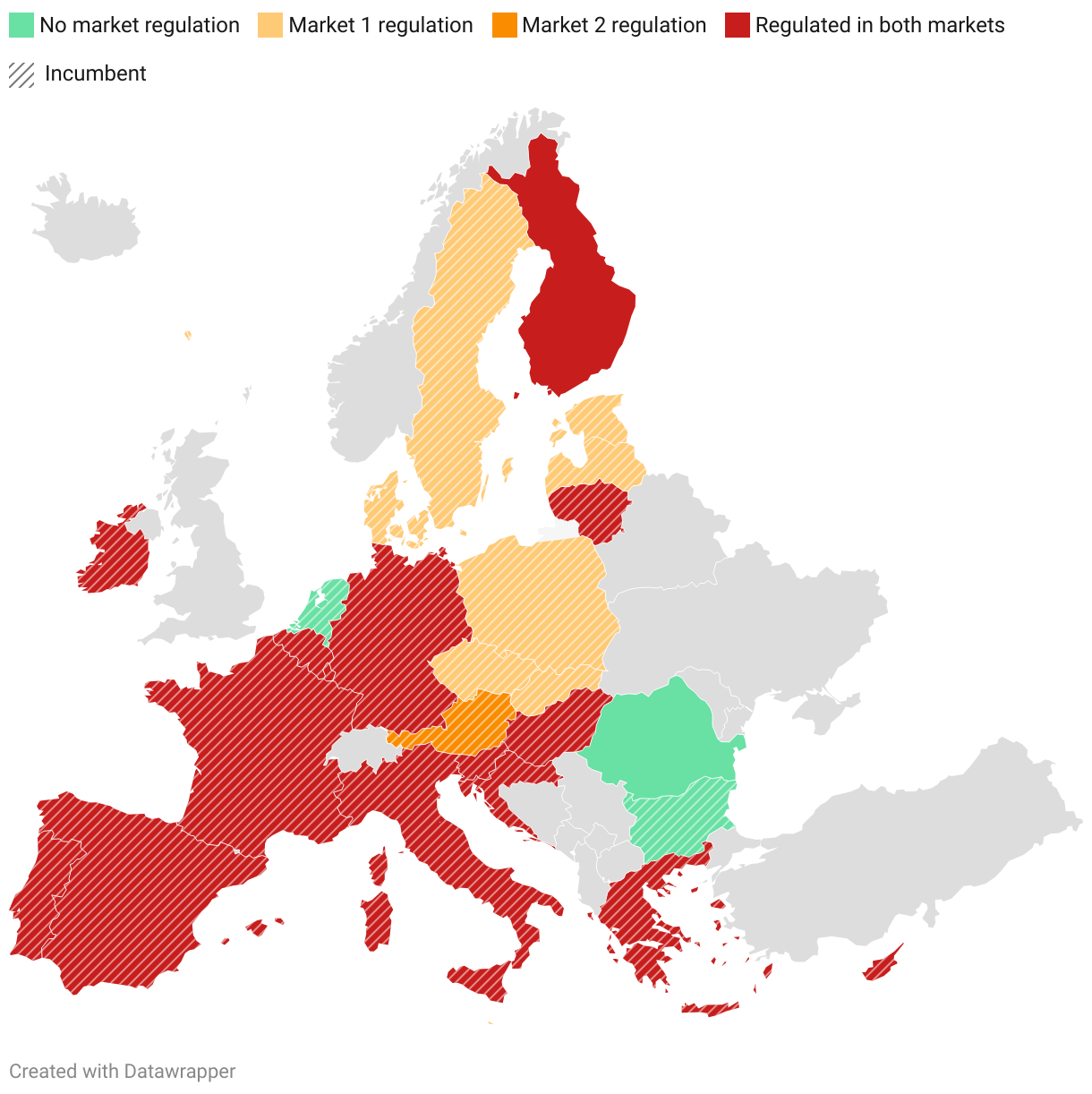 Market regulation for largest operator by EU country