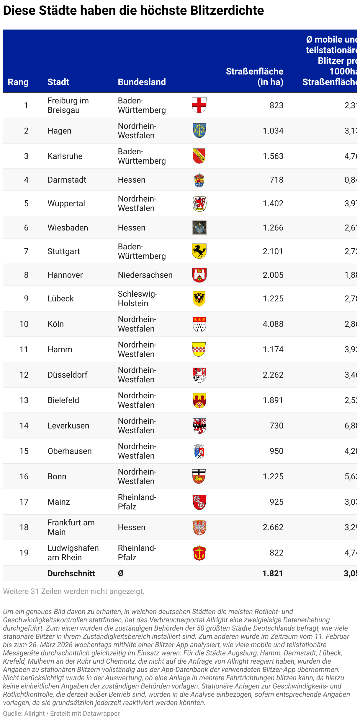 Diese Städte haben die höchste Blitzerdichte