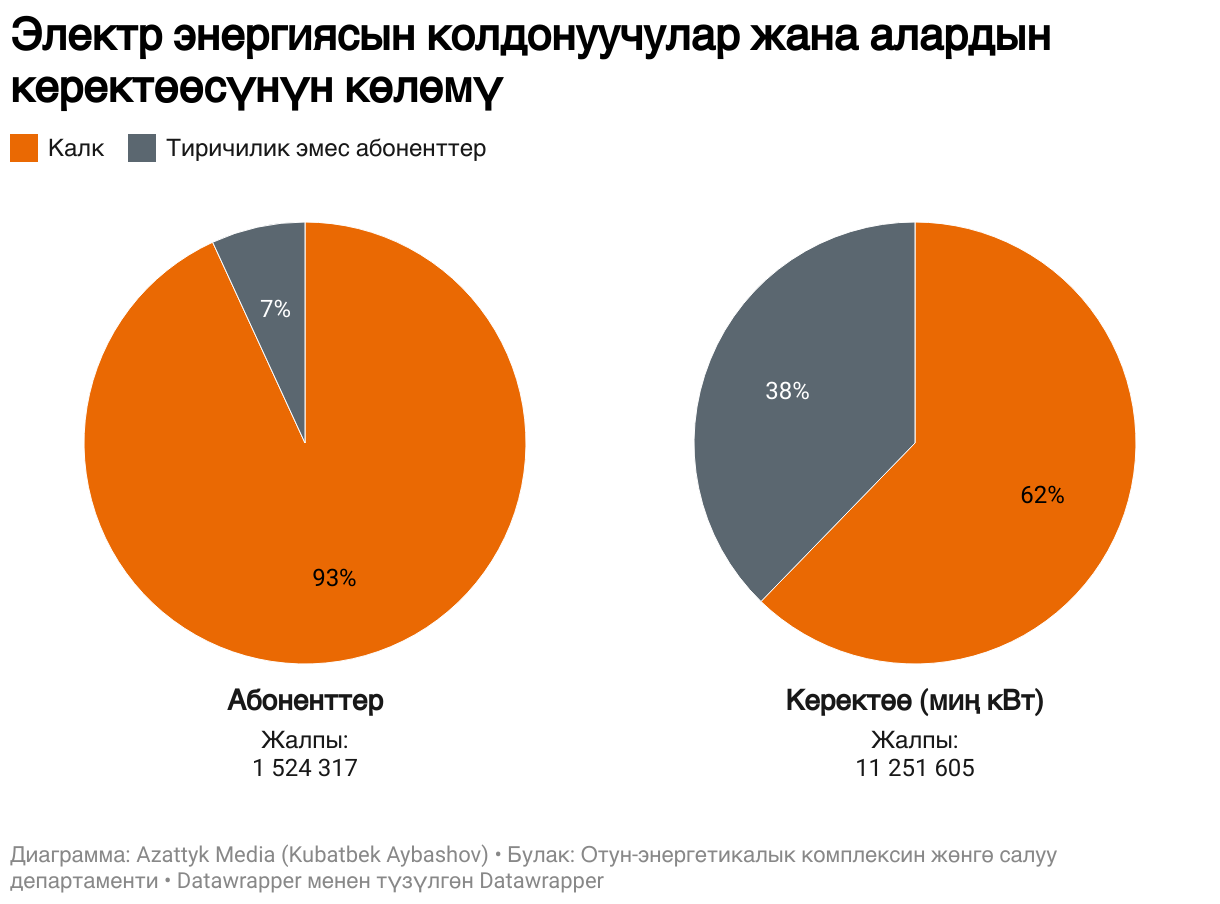 Электр энергиясын колдонуучулар жана алардын керектөөсүнүн көлөмү
