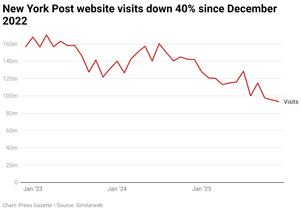 New York Post website visits down 40% since December 2022