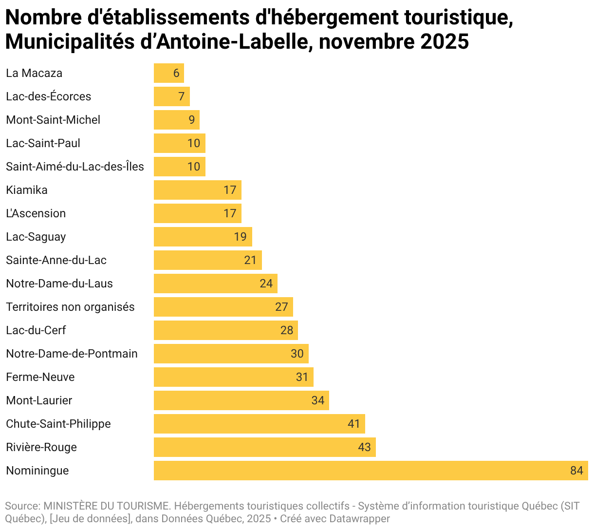 Nombre d'établissements d'hébergement touristique, Municipalités d’Antoine-Labelle, novembre 2025