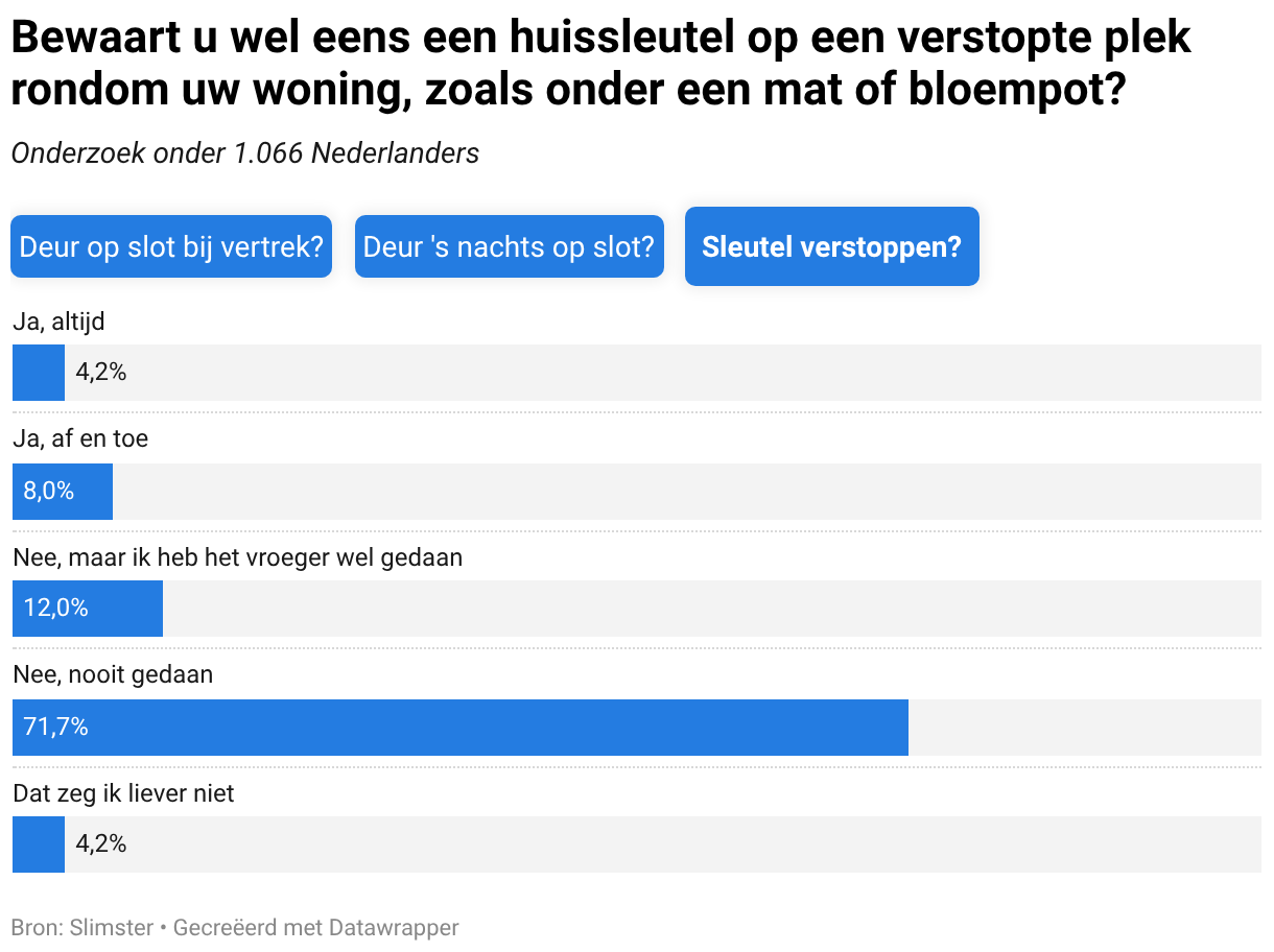 Onderzoek onder 1.066 Nederlanders Deur op slot bij vertrek? Deur 's nachts op slot? Sleutel verstoppen?