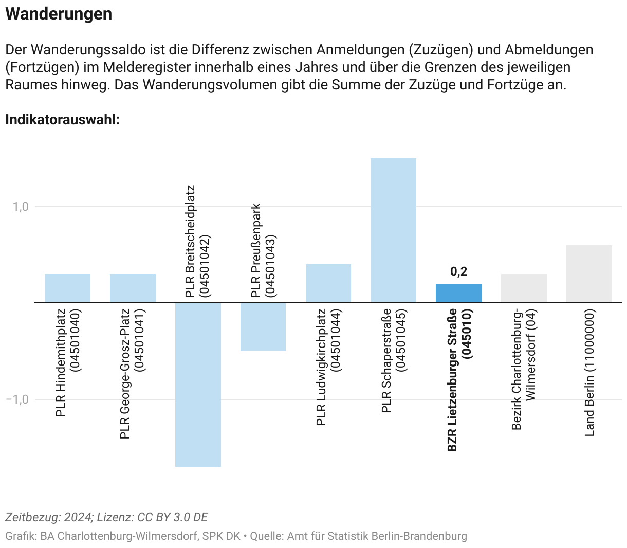 Der Wanderungssaldo ist die Differenz zwischen Anmeldungen (Zuzügen) und Abmeldungen (Fortzügen) im Melderegister innerhalb eines Jahres und über die Grenzen des jeweiligen Raumes hinweg. Das Wanderungsvolumen gibt die Summe der Zuzüge und Fortzüge an.