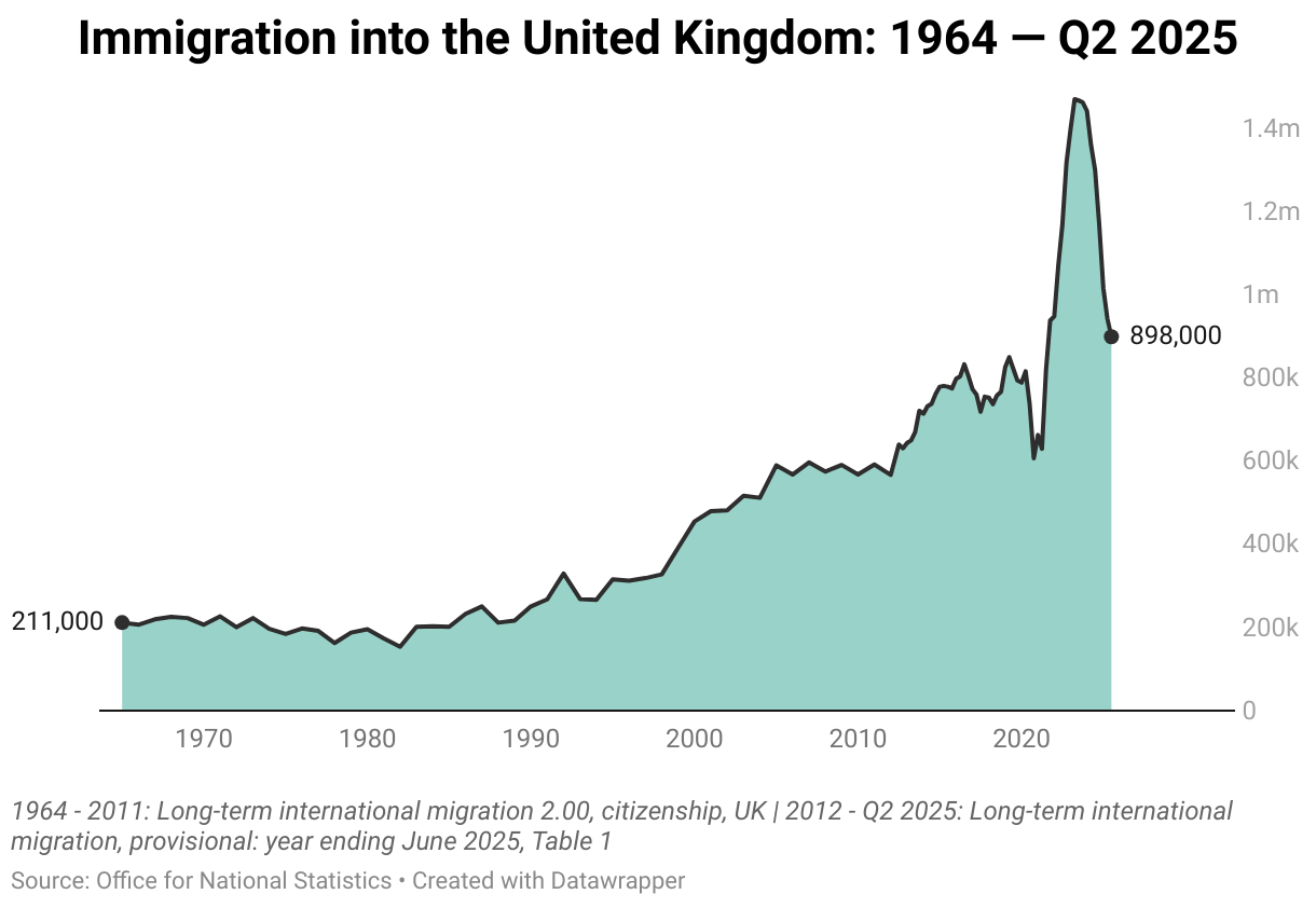 Immigration into the United Kingdom: 1964 — Q2 2025