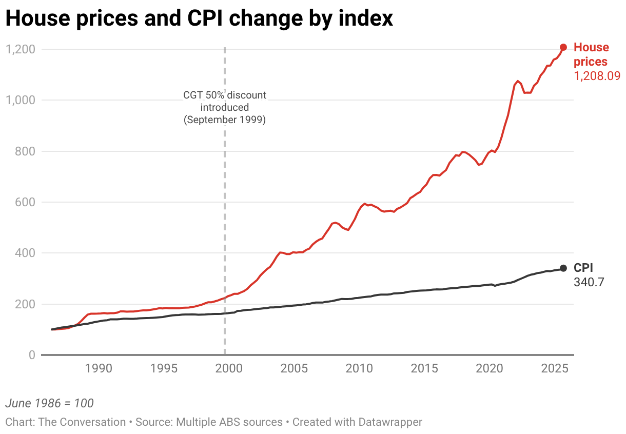 House prices and CPI change by index
