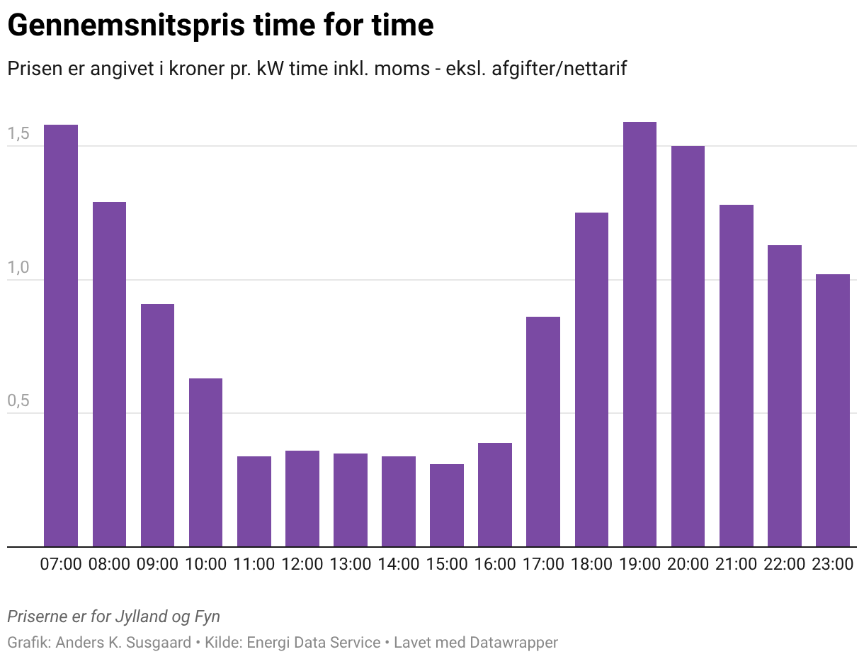 Prisen er angivet i kroner pr. kW time inkl. moms - eksl. afgifter/nettarif