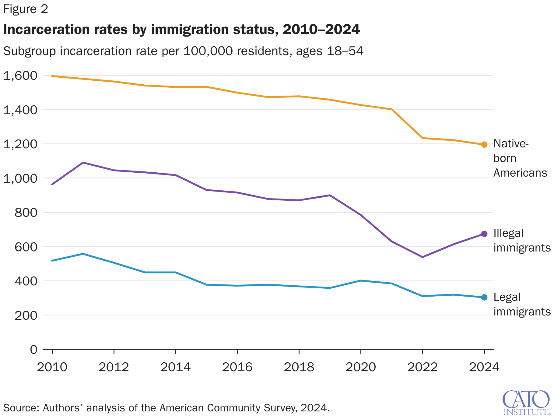 Incarceration rates by immigration status, 2010–2024