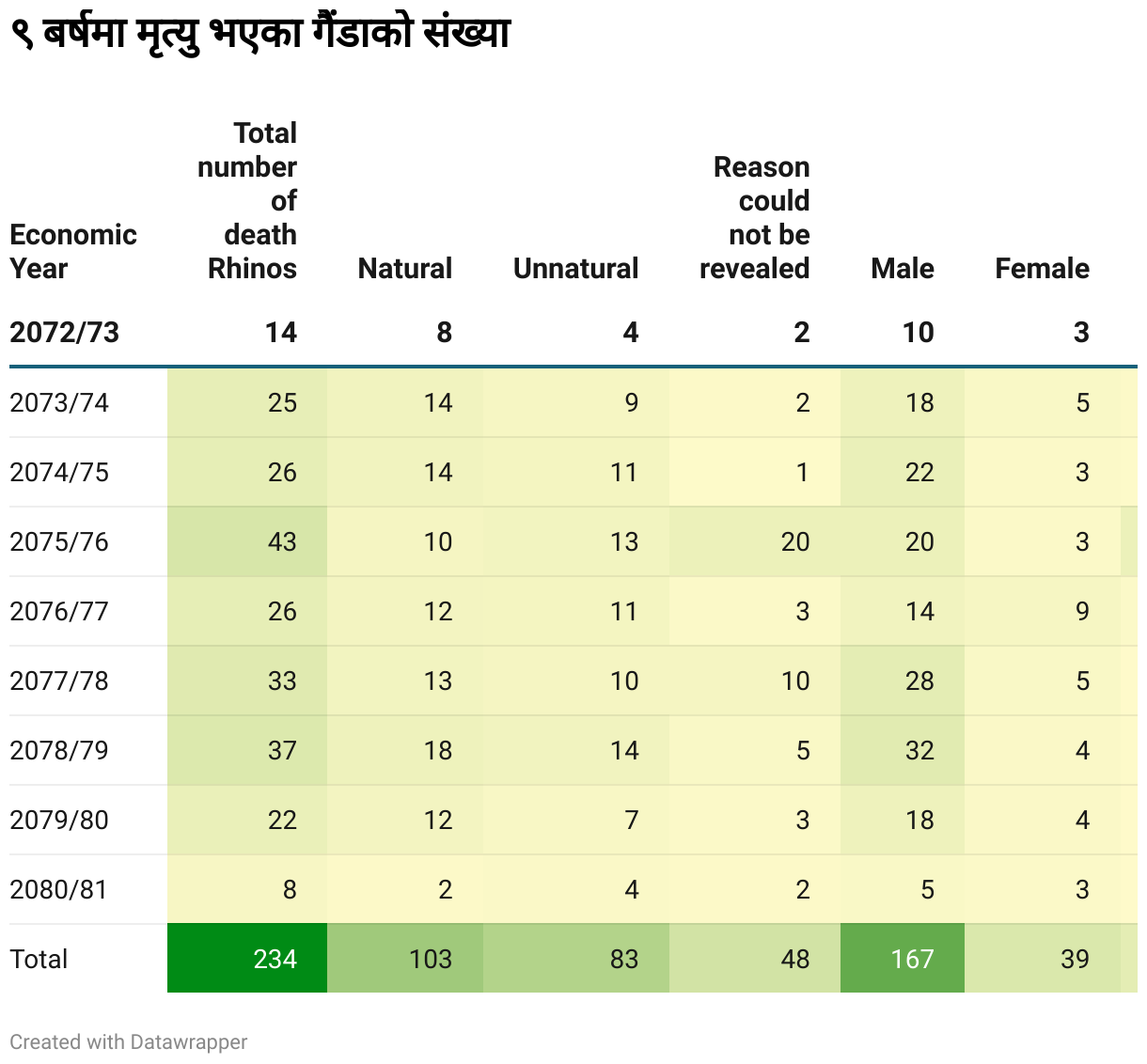 ९ बर्षमा मृत्यु भएका गैंडाकाे संख्या