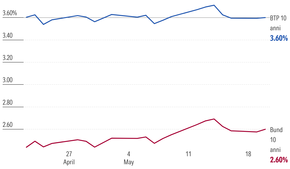 Confronto tra i rendimenti del BTP e del Bund nell'ultimo mese