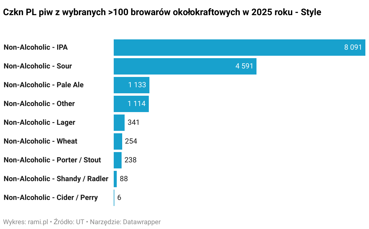 Czkn PL piw z wybranych >100 browarów okołokraftowych w 2025 roku - Style
