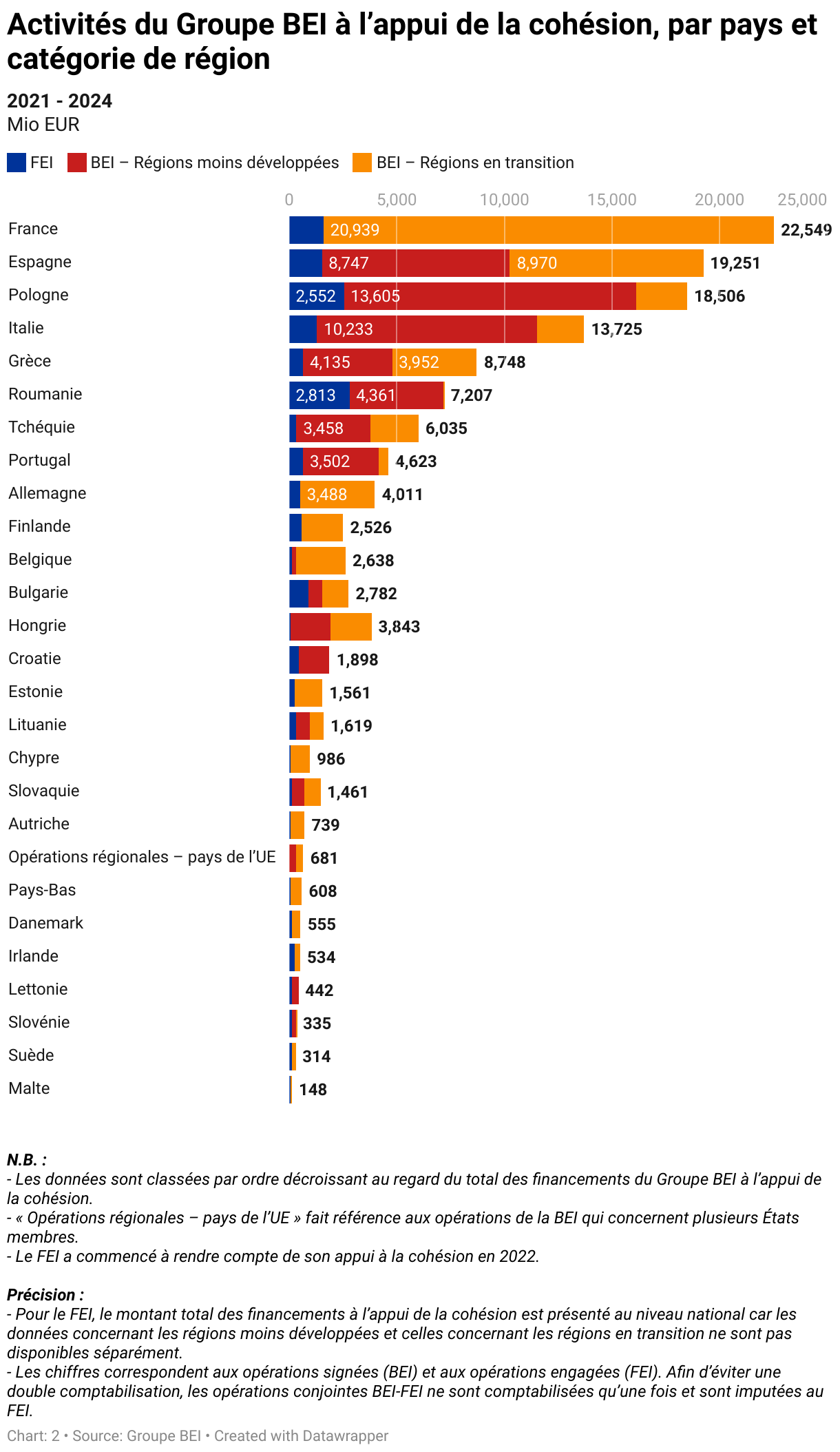 Activités du Groupe BEI à l’appui de la cohésion, par pays et catégorie de région