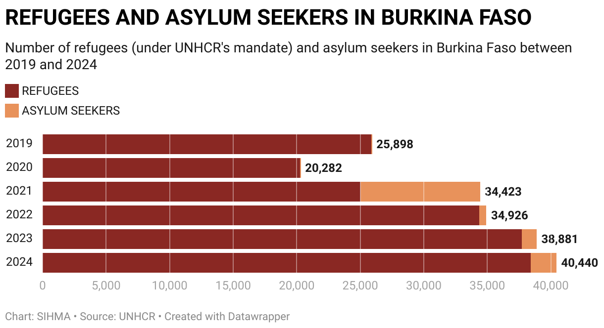 Number of refugees (under UNHCR's mandate) and asylum seekers in Burkina Faso between 2019 and 2024
