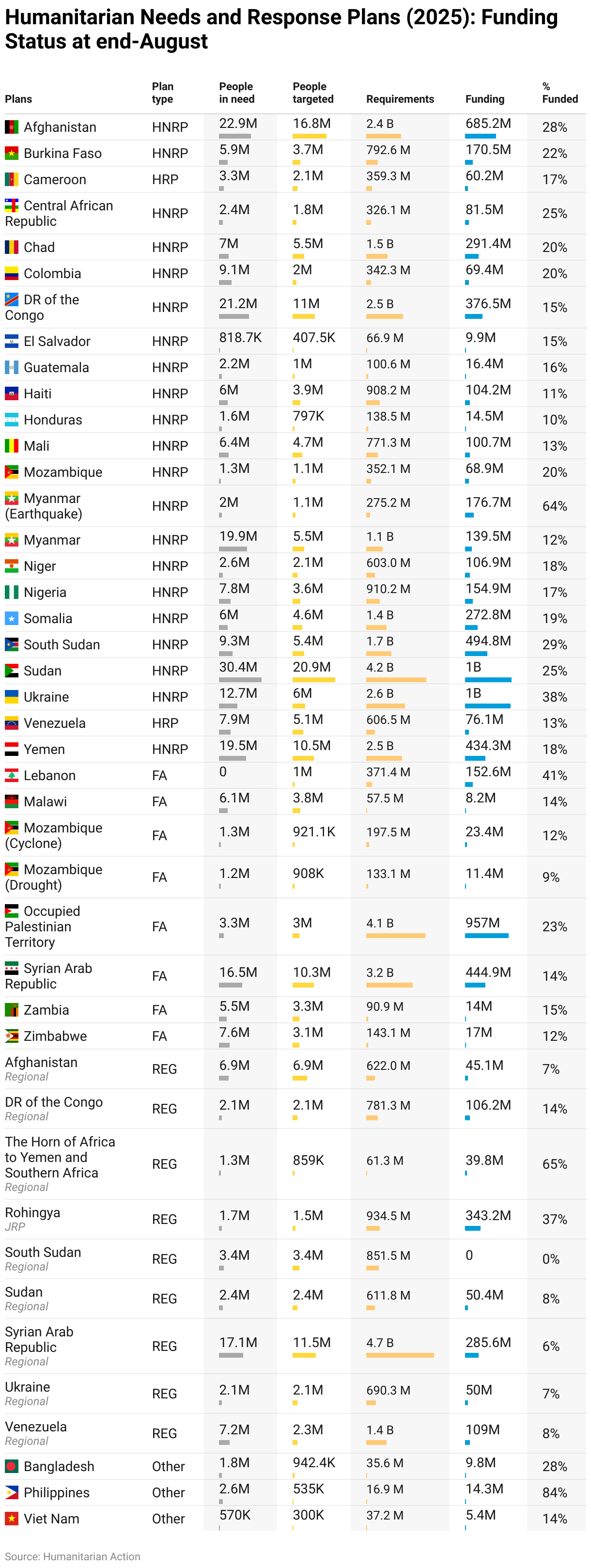 Humanitarian Needs and Response Plans (2025): Funding Status at end-August