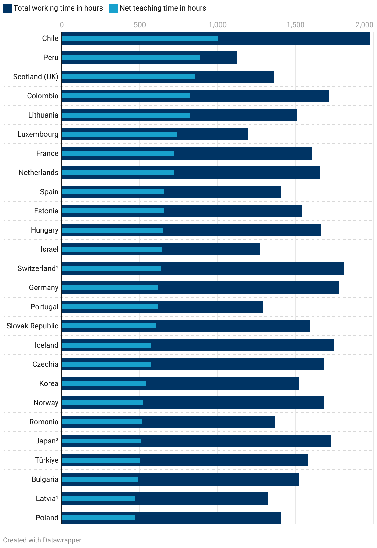 Number of hours of teaching and total statutory working time per year for upper secondary teachers (2023)