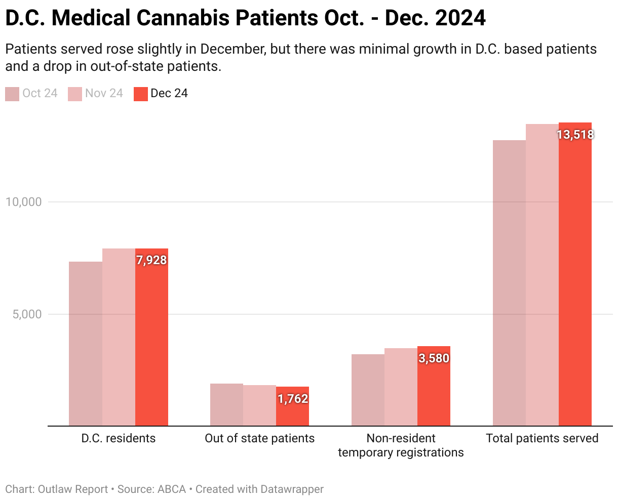 Patients served rose slightly in December, but there was minimal growth in D.C. based patients and a drop in out-of-state patients.