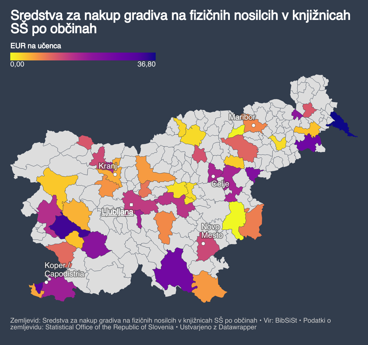Sredstva za nakup gradiva na fizičnih nosilcih v knjižnicah SŠ po občinah