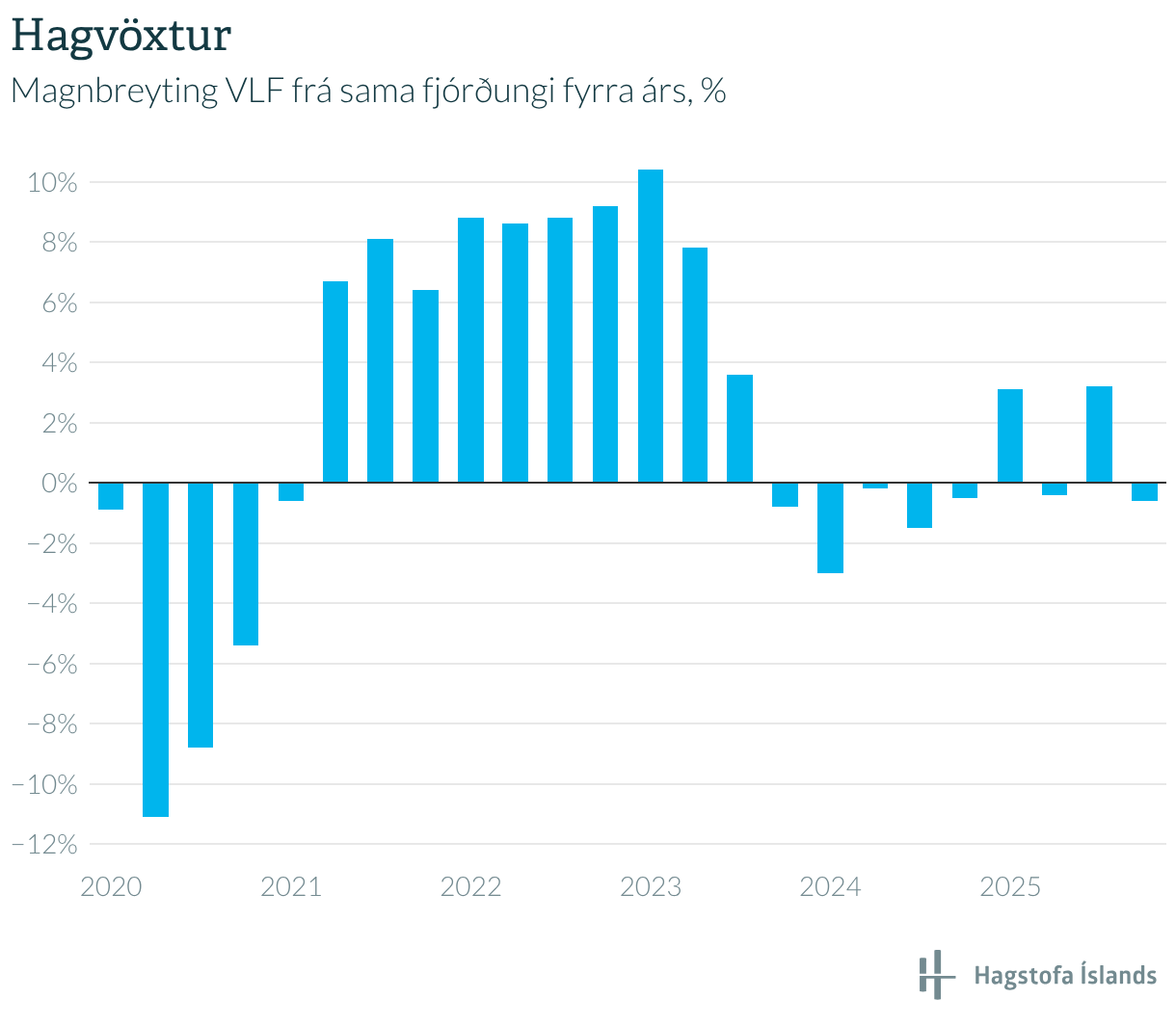 Magnbreyting VLF frá sama fjórðungi fyrra árs, %