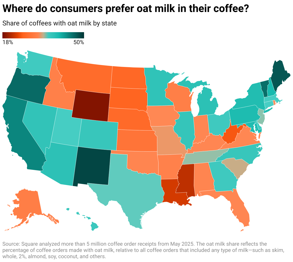 Share of coffees with oat milk by state