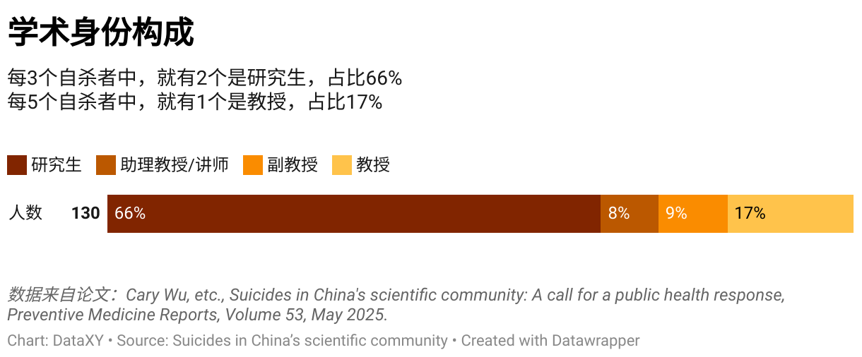 每3个自杀者中,就有2个是研究生,占比66% 每5个自杀者中,就有1个是教授,占比17%